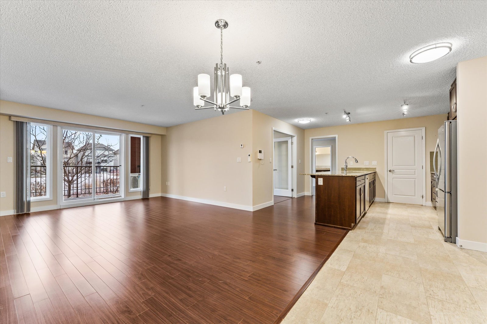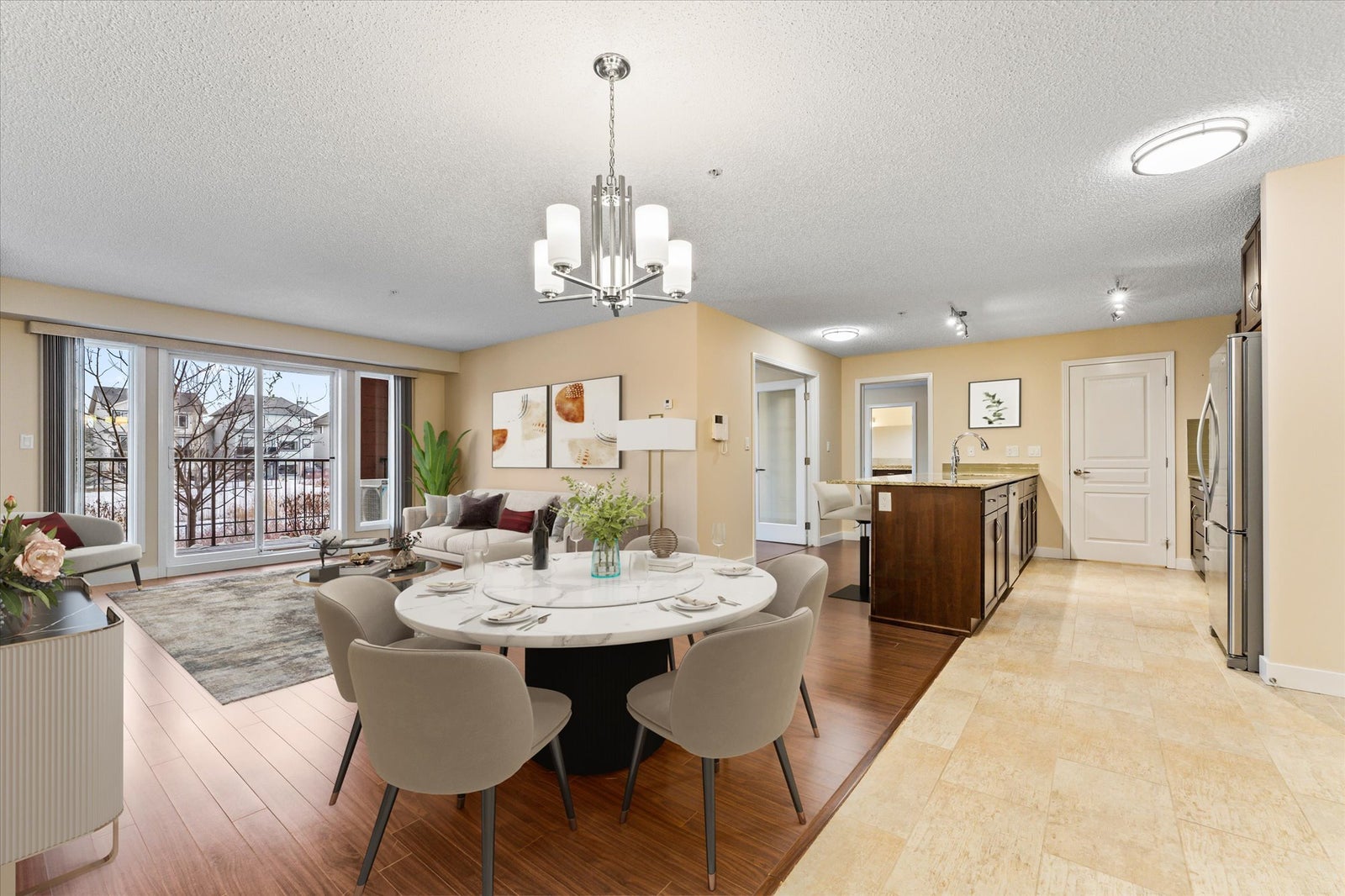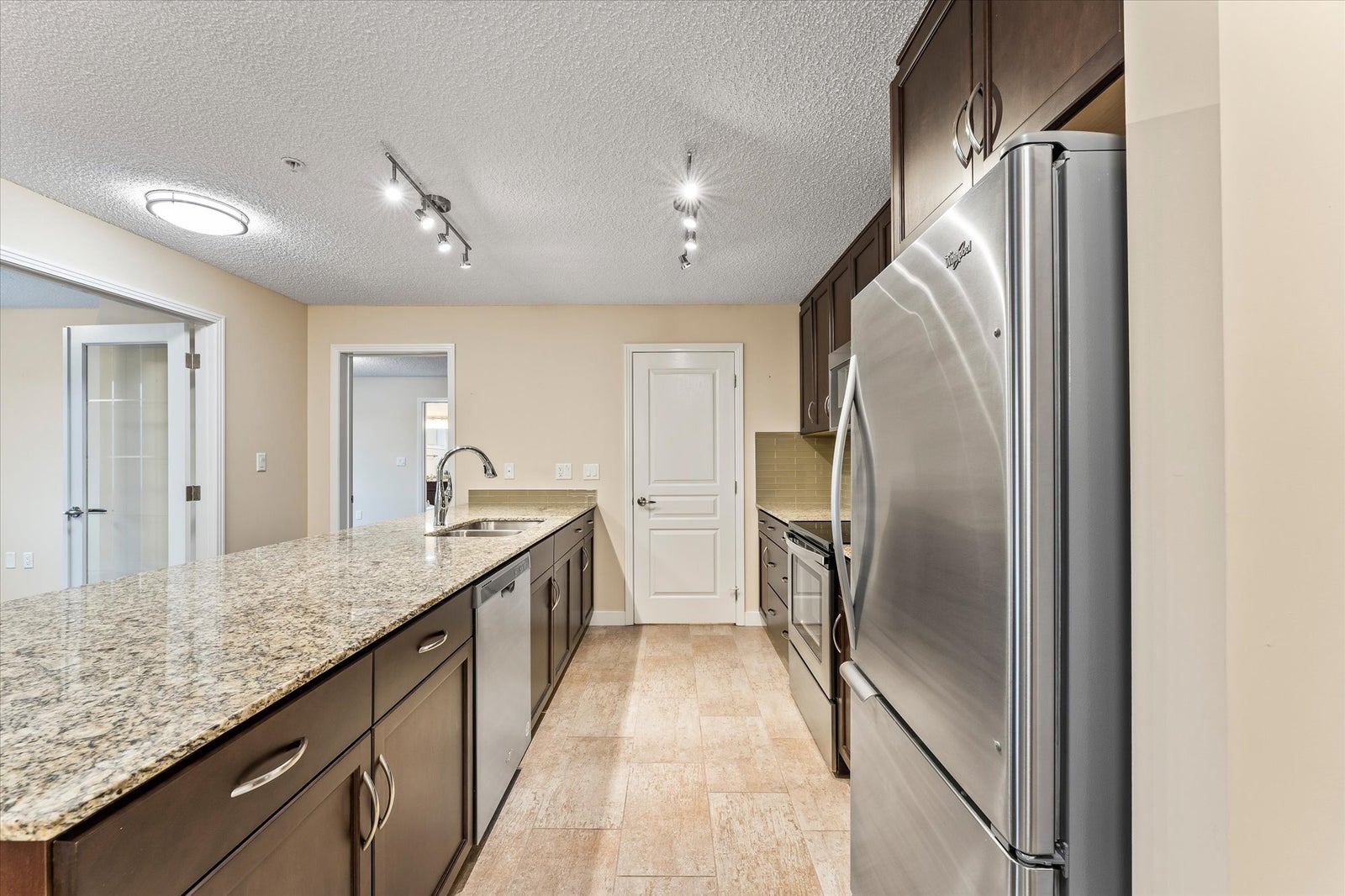 Luxurious lakeside living awaits in this 1,450 sq ft condo at The Quay in South Terwillegar. Featuring 2 bedrooms PLUS a spacious den and 2 full bathrooms, including a lavish 5 piece ensuite with jacuzzi tub and walk-in closet. The kitchen is a chef's dream with stainless steel appliances, a large island, ample cabinet space, and a walk-in pantry. Enjoy comfort year-round with in-floor heating and air conditioning. This unit includes TWO patios with gorgeous views, a titled underground parking stall with locked storage (plus a convenient car wash in the parkade), as well as a separate titled storage locker on the same level. Located in a well-managed building in South Terwillegar with easy access to amenities and the Henday. (Some photos are virtually staged)