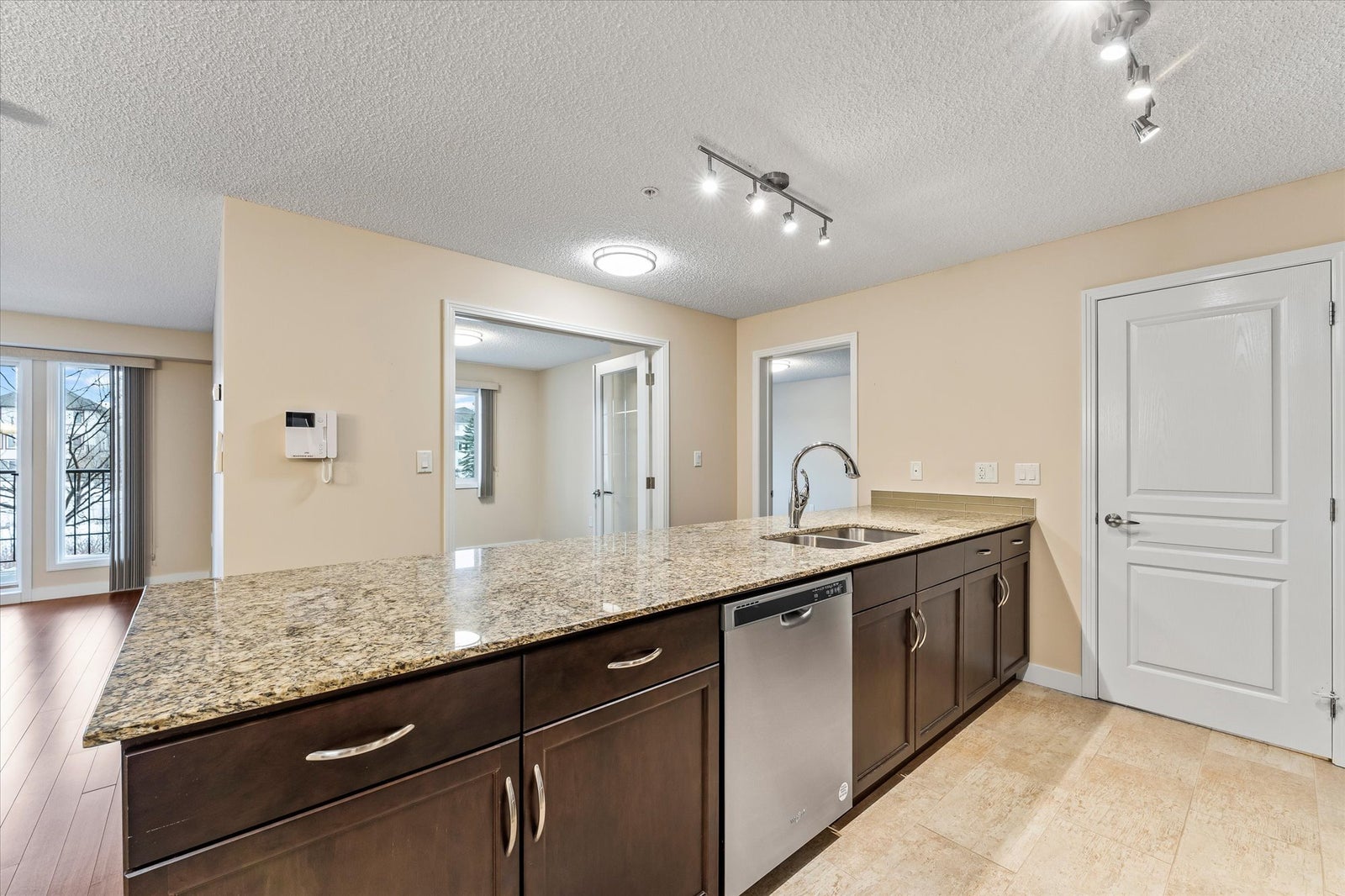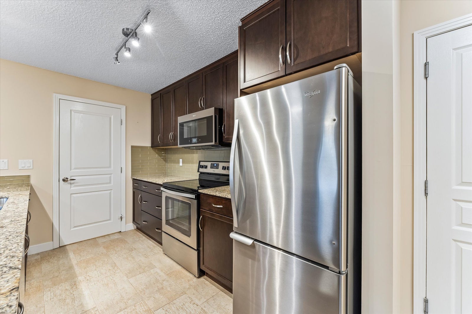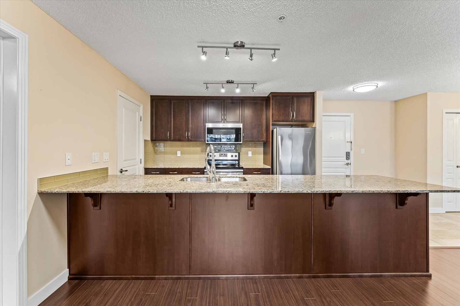Luxurious lakeside living awaits in this 1,450 sq ft condo at The Quay in South Terwillegar. Featuring 2 bedrooms PLUS a spacious den and 2 full bathrooms, including a lavish 5 piece ensuite with jacuzzi tub and walk-in closet. The kitchen is a chef's dream with stainless steel appliances, a large island, ample cabinet space, and a walk-in pantry. Enjoy comfort year-round with in-floor heating and air conditioning. This unit includes TWO patios with gorgeous views, a titled underground parking stall with locked storage (plus a convenient car wash in the parkade), as well as a separate titled storage locker on the same level. Located in a well-managed building in South Terwillegar with easy access to amenities and the Henday. (Some photos are virtually staged)