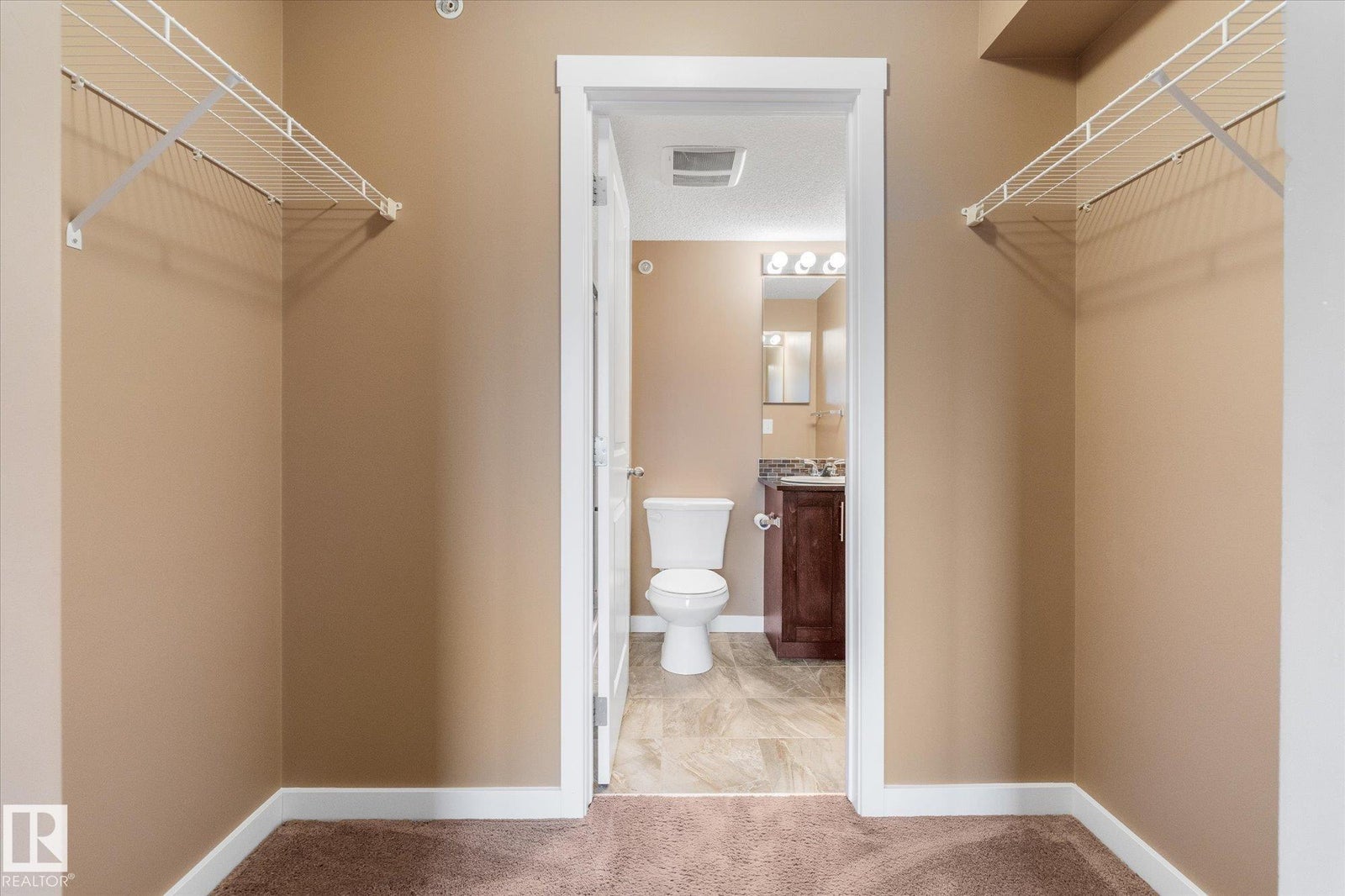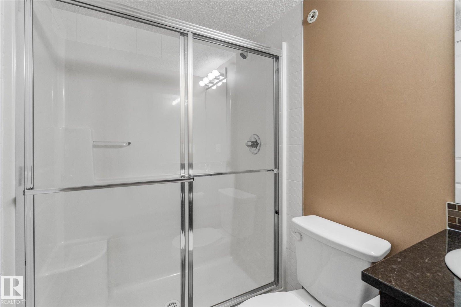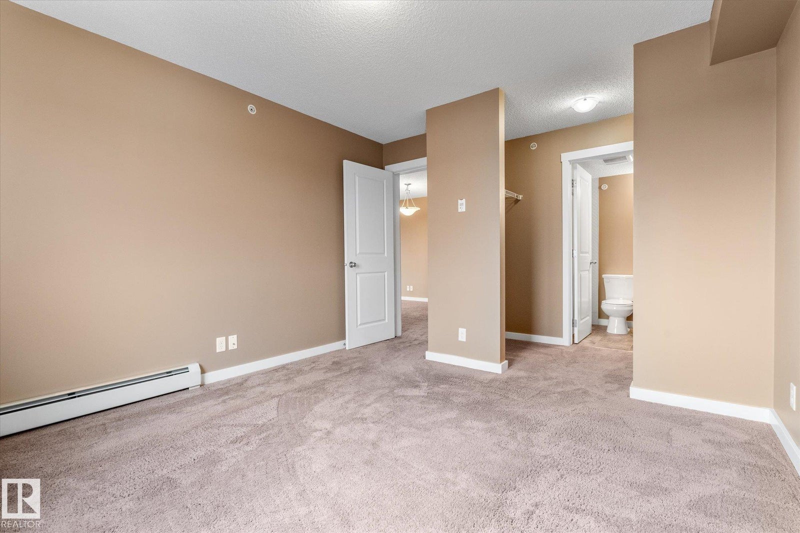 Welcome to one of the most desirable units at Creekwood Landing! This top floor 975 SF corner unit features 2 bedrooms, 2 bathrooms, AND 2 parking stalls! One is underground and the other is above ground. Plenty of natural light and a view over the pond across the street. Other great features of this condo are in-suite laundry, breakfast nook, large kitchen with SS appliances, granite counters, space by the front door could be used for a small office, walk-through closet, 3 pc primary ensuite, patio with a view, visitor parking, and much more. Some photos are virtually staged.