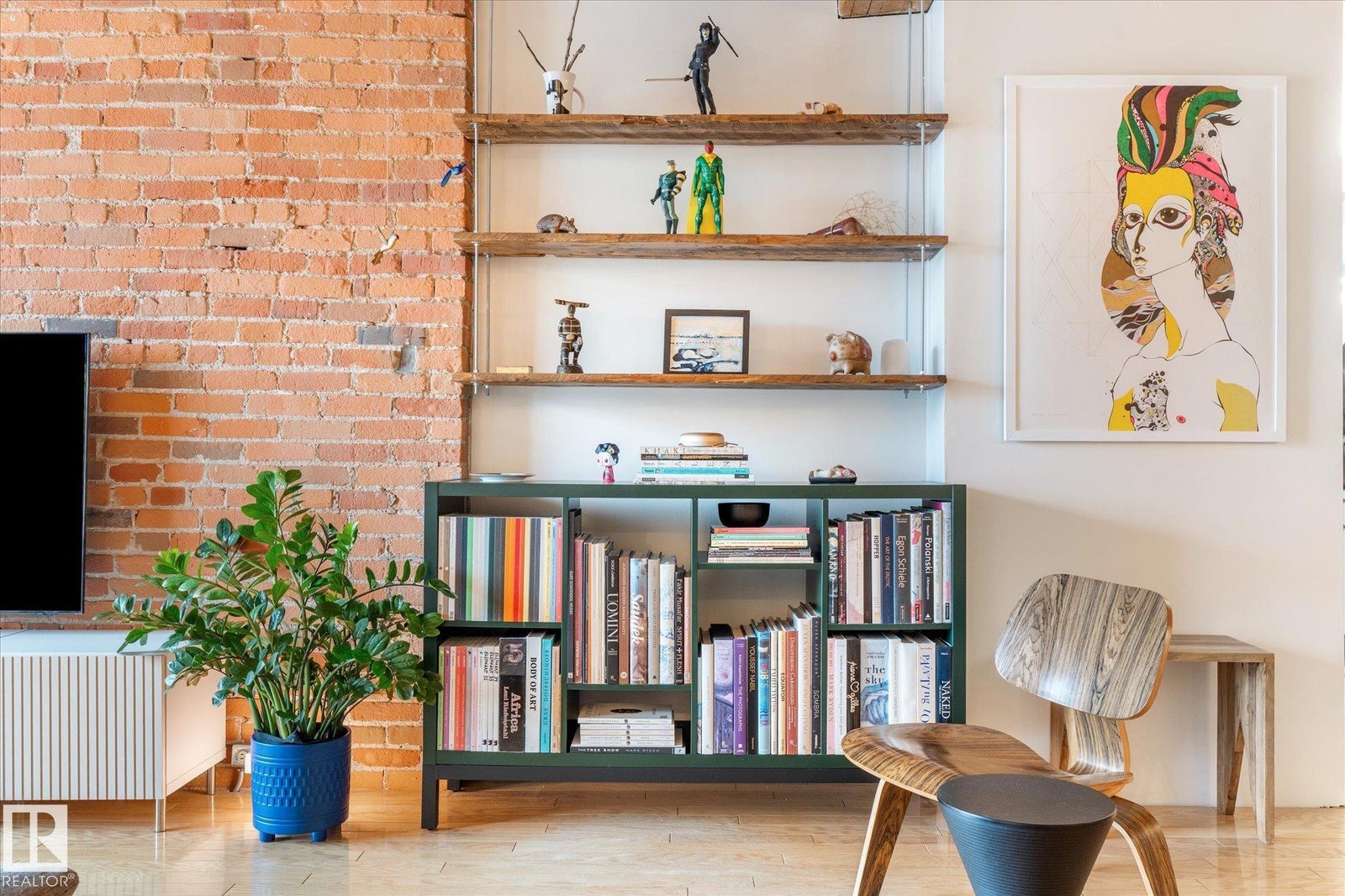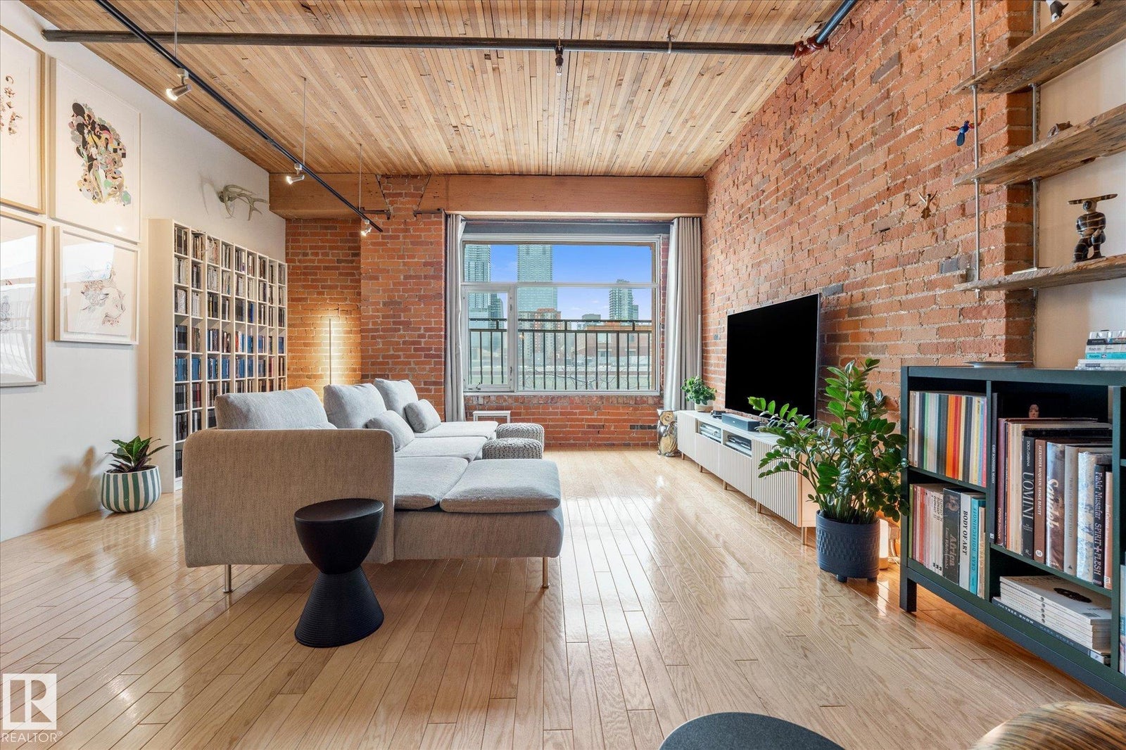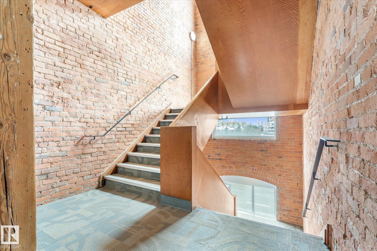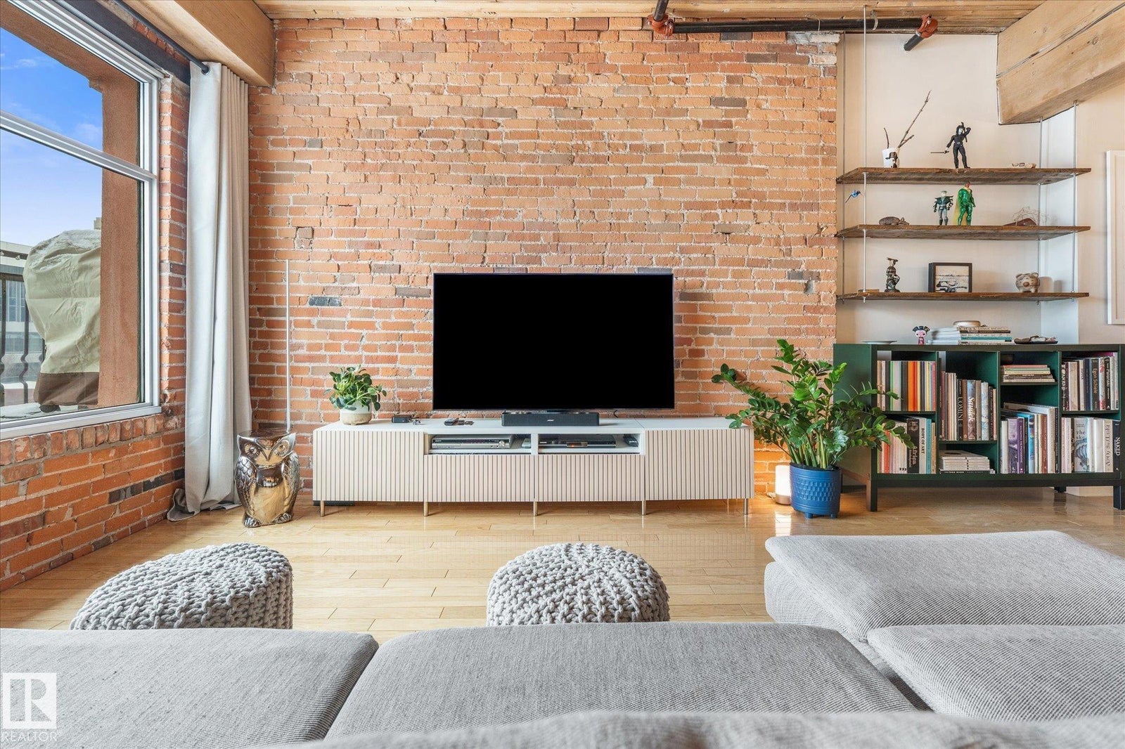 Discover urban living in this stunning hard loft condo conversion in downtown Edmonton, located just off 109 St and 104 Ave. Spanning over 800 square feet, this unique residence features original brick and wood beam accents, creating a unique vibe. Enjoy one of the few private balconies in the building, offering breathtaking views of the downtown skyline and stunning sunrises. The open-concept layout is ideal for entertaining and everyday living, with in-suite laundry and air conditioning for added convenience. Titled underground parking is included, and you'll be just moments away from Grant MacEwan University, Norquest College, the river valley, and Rogers Place, along with shopping and transit options. Experience the perfect blend of vibrant city life and serene living in this exceptional condo!