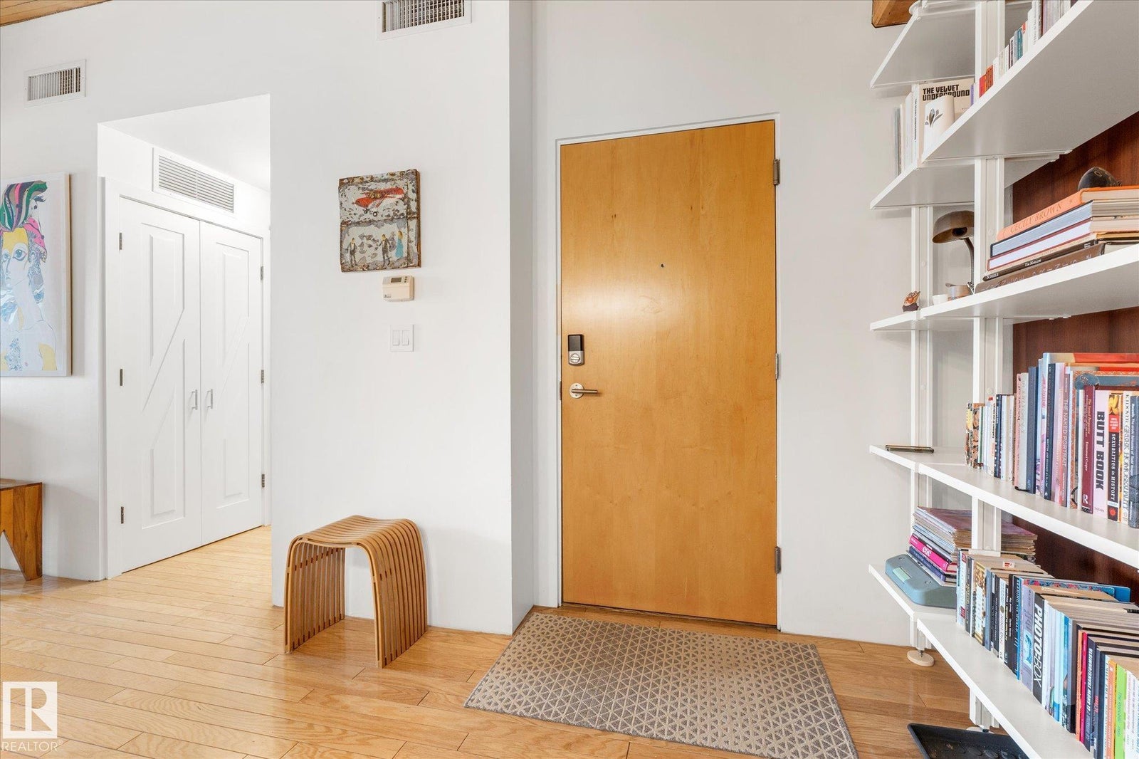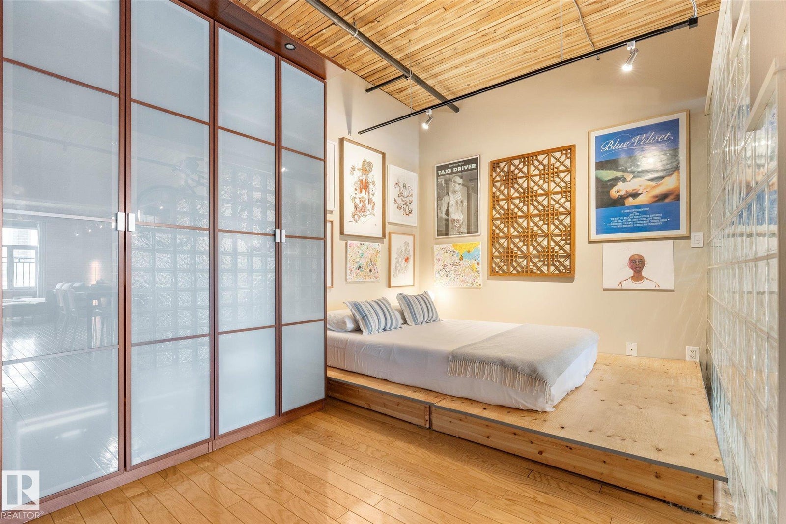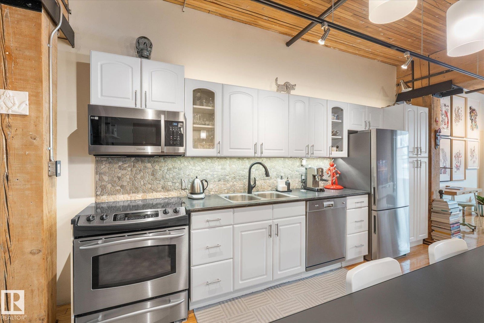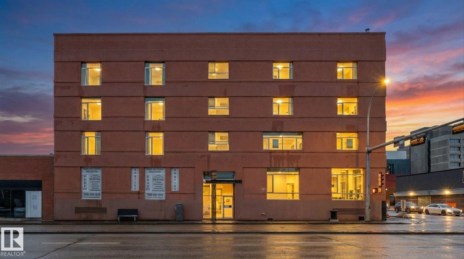 Discover urban living in this stunning hard loft condo conversion in downtown Edmonton, located just off 109 St and 104 Ave. Spanning over 800 square feet, this unique residence features original brick and wood beam accents, creating a unique vibe. Enjoy one of the few private balconies in the building, offering breathtaking views of the downtown skyline and stunning sunrises. The open-concept layout is ideal for entertaining and everyday living, with in-suite laundry and air conditioning for added convenience. Titled underground parking is included, and you'll be just moments away from Grant MacEwan University, Norquest College, the river valley, and Rogers Place, along with shopping and transit options. Experience the perfect blend of vibrant city life and serene living in this exceptional condo!